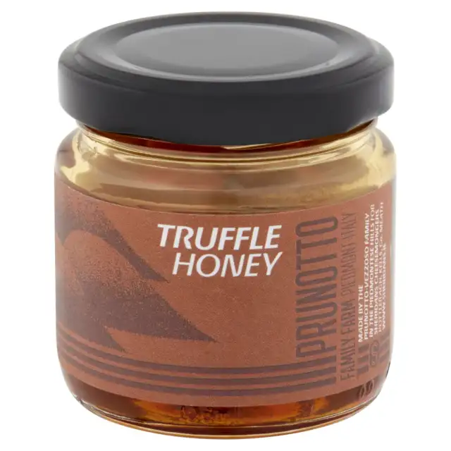 Our Truffle honey is specially selected for us by producer Prunotto. This Italian pure blossom honey is made by Prunotto Organic Farm in the Piemontese hills, a sliver of truffle is added to the honey and the aroma permeates the entire honey adding a rich aroma. Beautiful drizzled on hard cheeses.